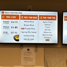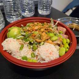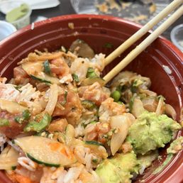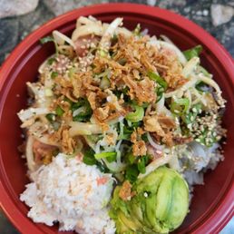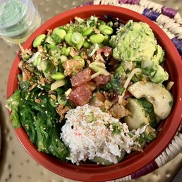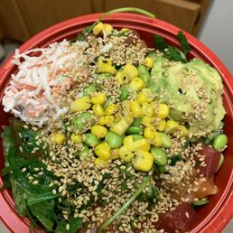 This spot is not fancy. In fact, it's starting to look a bit run down with the ceiling leaking and the bathroom being out of service for a long time now. (I think they just don't want people to use it lol) However, the food is legit. It's straight to the point poke. The crew that works here seem to be different each time I pop in but they all make a good bowl! They really pack it up!! I'm impressed. You really get your moneys worth here. Please tip the workers. Especially if you're happy with the service received.